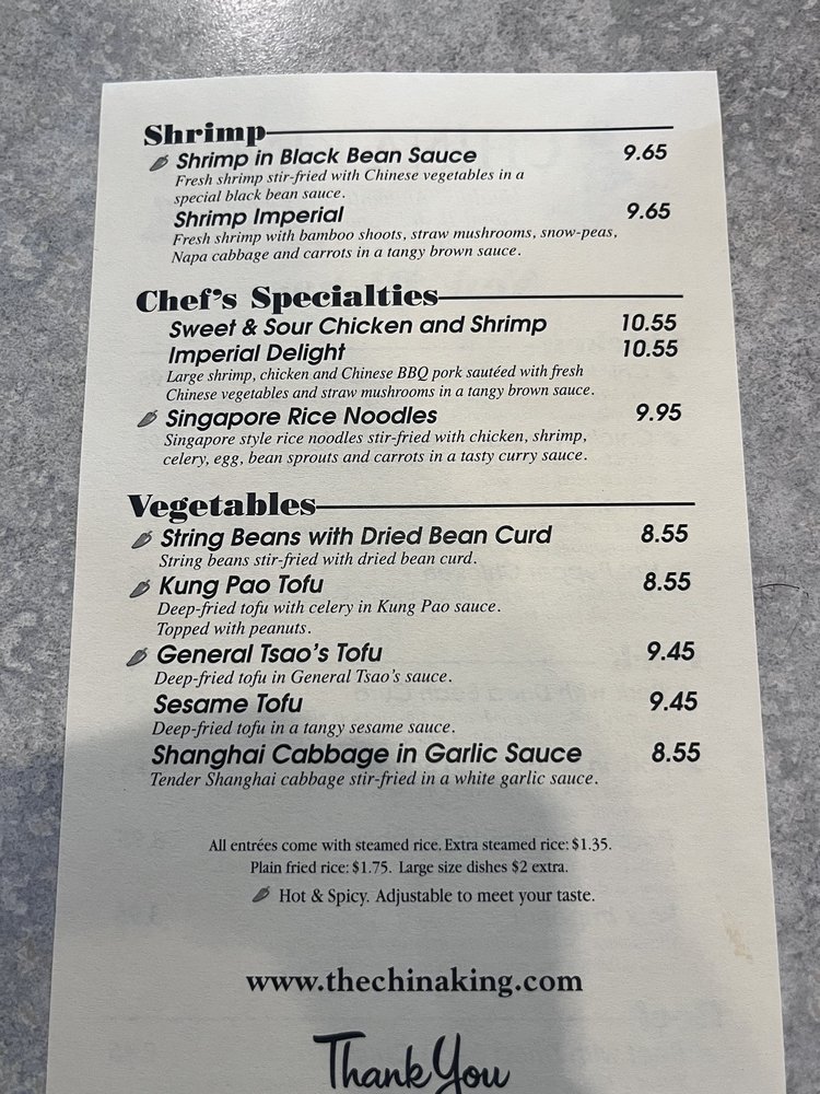 Welcome to China King V, your new favorite destination for flavorful Chinese cuisine in Falls Church, VA. Specializing in a variety of chicken dishes and heartwarming soups, this chicken shop promises a delightful dining experience whether you choose to eat in or take out. The menu offers a range of options, though vegetarian selections may be limited.